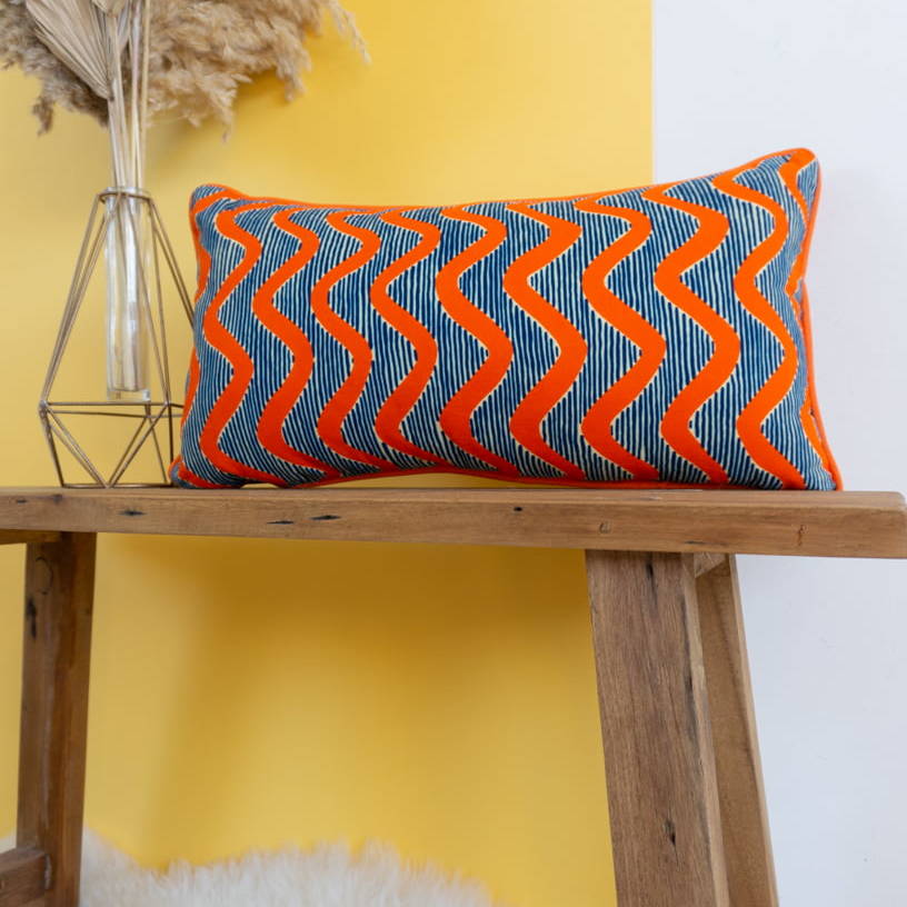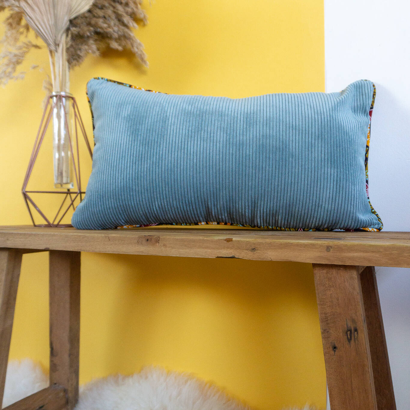 KUTA – Housse de coussin en velours côtelé avec passepoil en wax 50×30