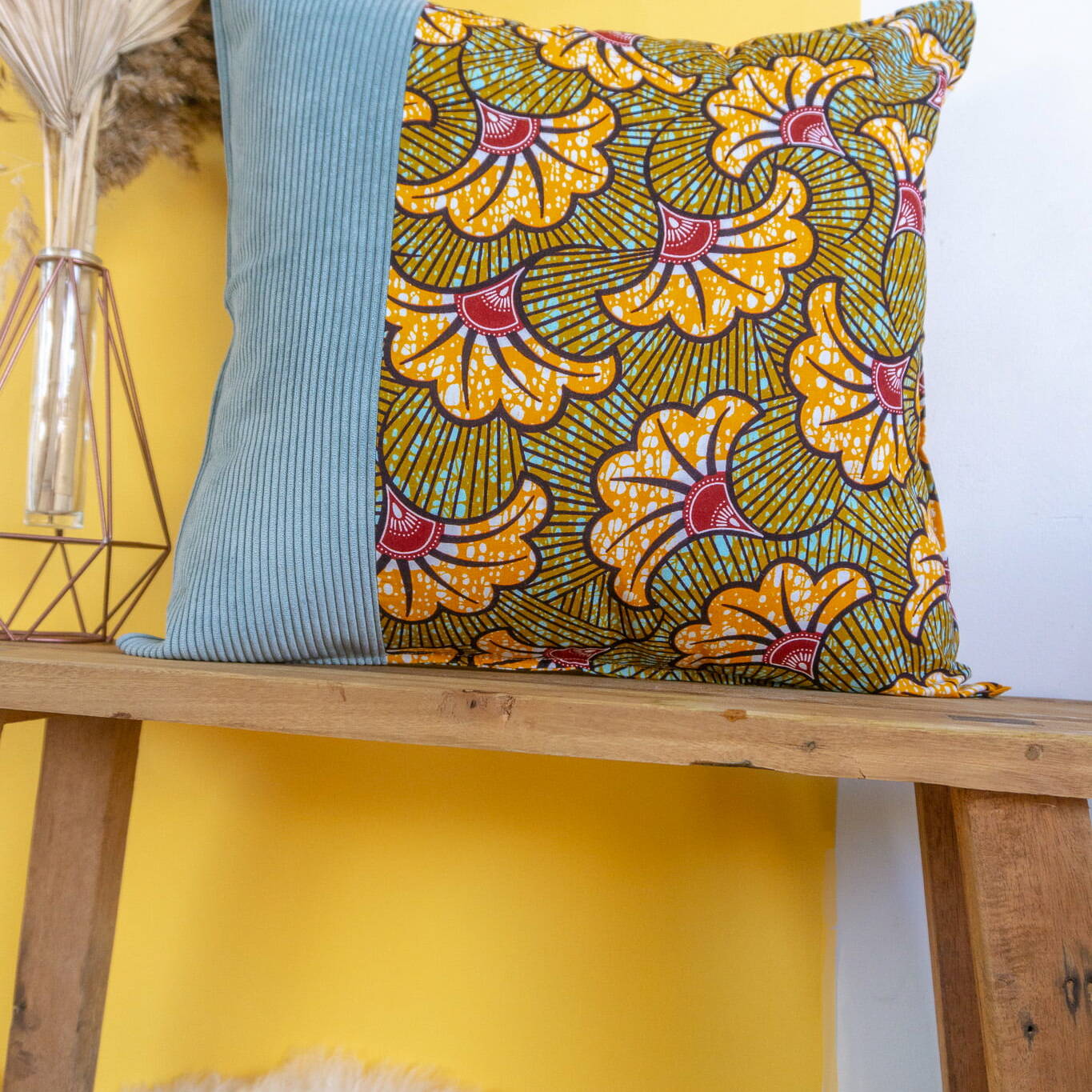 KYTA – Housse de coussin en wax et velours côtelé 50×50