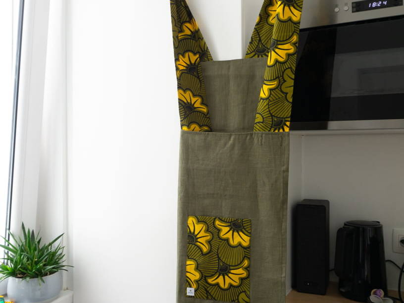 KEIZA – Tablier de cuisine en coton, wax et lin 120×90