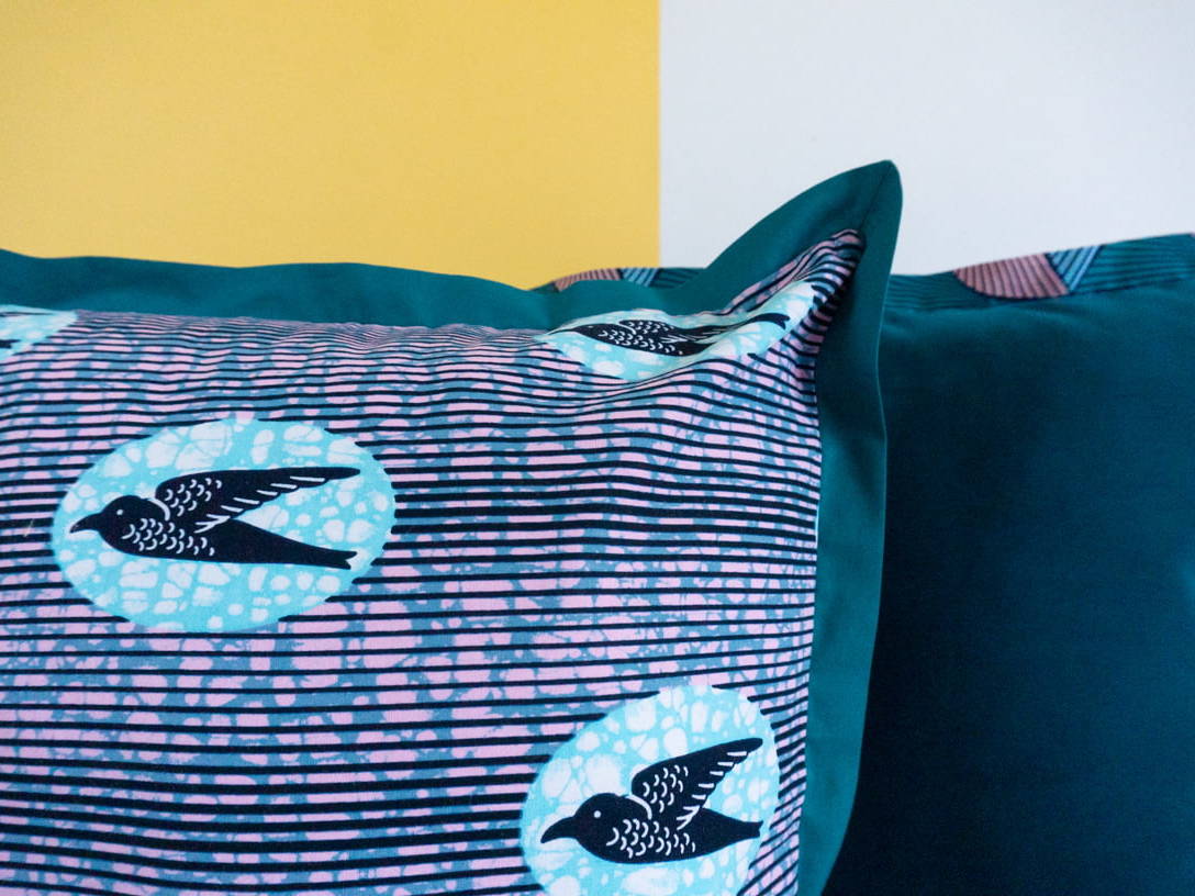 KENYA – Housse de coussin en wax et biais en coton 50×50