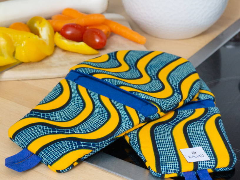 Kyan sera votre allié coloré pour vous protéger de la chaleur dans votre cuisine. Plus petit et plus pratique que les gants traditionnels, Kyan trouvera facilement sa place en cuisine. Notre tablier Kyan, sera le compagnon idéal pour Kya, en leur compagnie vous allez adorer faire des bons petits plats. Osez donc la différence dans votre cuisine.