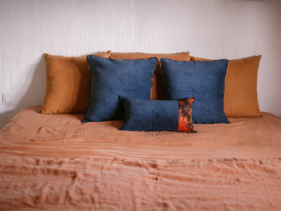 Osez la différence dans votre intérieur en choisissant Kobi, elle saura apporter une touche cosy, colorée et chic à votre espace de vie. Transformez votre espace avec Kobi, un mélange parfait de tradition et de modernité. Chaque housse est soigneusement fabriquée à la main avec du batik traditionnel du Ghana et du velours côtelé, offrant une pièce unique pleine de caractère. Produite dans notre atelier de réinsertion professionnelle à Bruxelles, Kobi ne se contente pas d'être belle ; elle soutient également une cause éthique. Ajoutez cette pièce à votre décoration pour un effet chaleureux et unique qui reflète votre goût pour l'authenticité et le style.