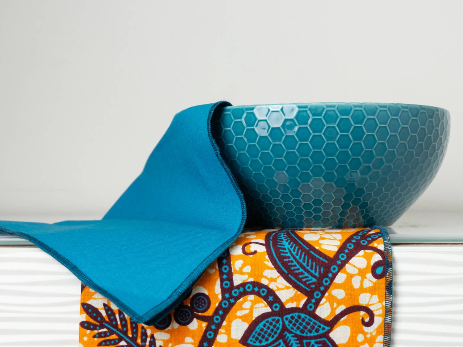 The unique nature of the Wax print means that the placement of the patterns may vary from one towel to another.