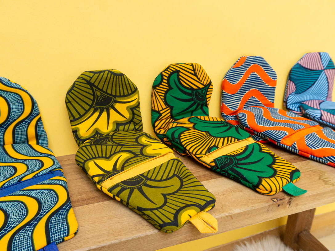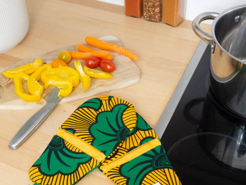 Tired of traditional and oversized oven gloves? It's time for you to switch to Kaicy kitchen gloves for a more practical grip. The gloves from the Ku Jua collection will protect you from the heat of your oven racks, pot handles, and even hot dishes straight from the microwave. In addition to providing protection, Kaicy will add a splash of color to your kitchen. Paired with the Kacy apron that safeguards your clothes, you'll be ready for a colorful cooking session.